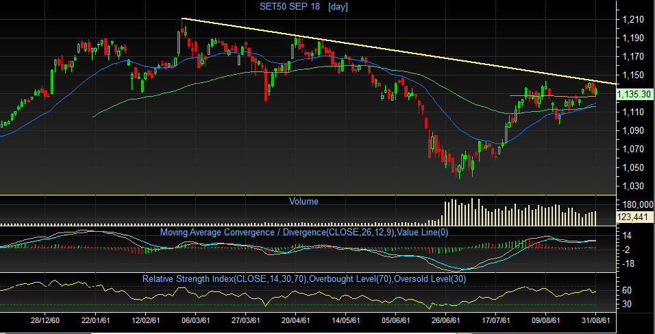 S50U18 TF Day : ตลอดทั้งสัปดาห์ที่ผ่านมา ดัชนียังคงเคลื่อนไหว Sideways ในกรอบแคบๆ แม้ว่าจะมีความพยายามขึ้นไปทดสอบ High 1142 จุด