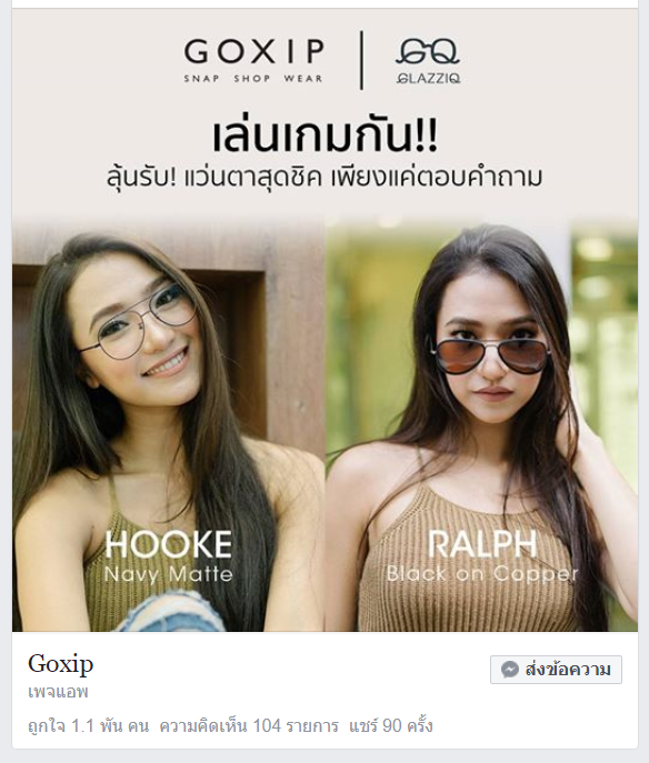 www.goxip.co.th เริ่มเรื่องคือผมเห็นกิจกรรมแจกแว่นตาฟรีของเค้าผ่าน Facebook แต่มนุษย์แบบผมเป็นคนที่ไม่ค่อยมีดวงเรื่องชิงโชคอะไรอยู่แล้ว ก็เลยหมดหวังตามเคยครับ 555555