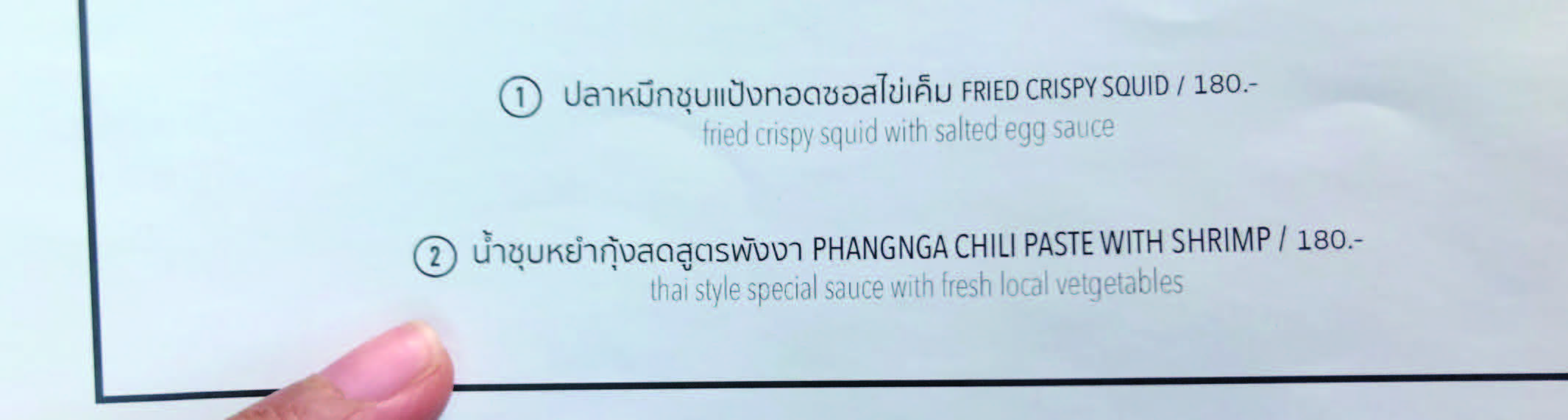 หลังจากนั้นจึงลองเปิดดูราคาบนเมนูอีกครั้ง ก็พบว่ามีบางรายการที่ไม่ตรงตามราคาบนเมนู เช่น