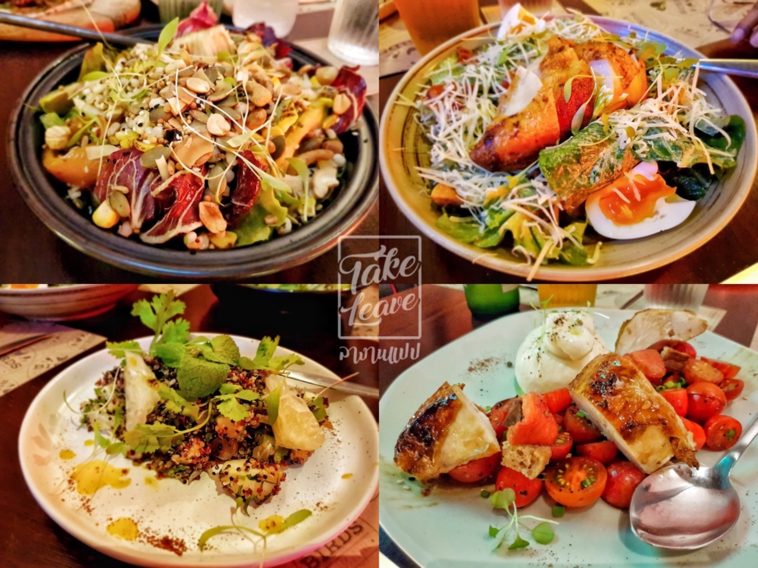 เมนูสลัดกันบ้าง เมนูแรกด้านบนสุดซ้ายมือคือ SUPER GRILLED 295 บาท มีอะโวคาโด้ ฟักทอง ผักสลัด ลูกเดือยและเมล็ดธัญพืชต่างๆ