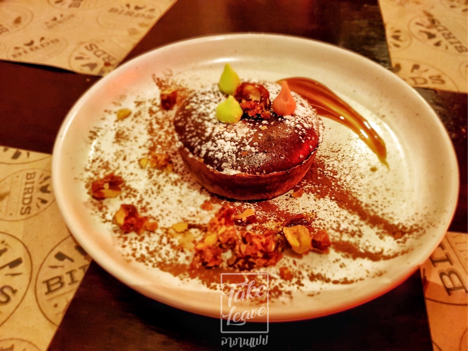 เมนูสุดท้าย CHOCOLATE LAVA CAKE 250 บาท เราชอบเมนูนี้มาก ลาวาอร่อย เข้มข้น ไม่หวานเกินไป แนะนำเลยจ้า