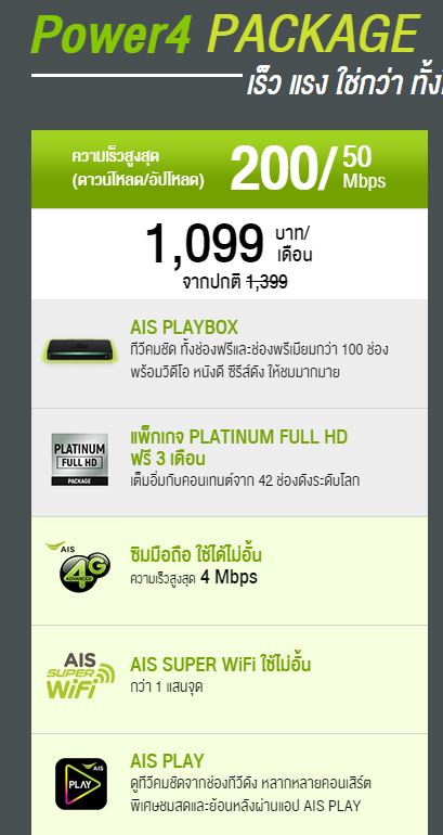 คือตอนนี้ใช้ 3BB Fiber 200/100 ตกเดือนละ 1,284.00 ละไปเห็น AIS โปร Power4PACKAGE 200/50 ตกเดือนละ 1175.93 ก็เลยว่าจะเปลี่ยนไป ais