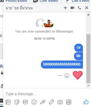 แต่พอไม่นาน ก็มี ข้อความส่งไปถึงเพื่อนในเฟส เป็นภาษาอังกฤษ และลงท้ายด้วย อิโมจิ หัวใจ