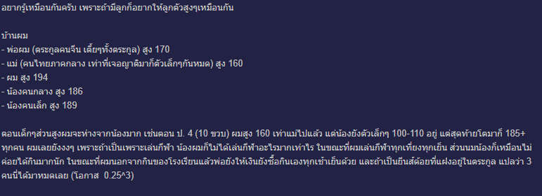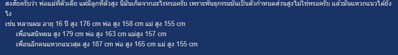 ปล.พ่อผมสูง 135 แม่ 120 ผมสูง 201 คั้งแต่ 17 (กรูก็พิมพ์ได้) ฉะนั้นอย่าเอาอะไรกับคำตอบใน Pantip มากครับ