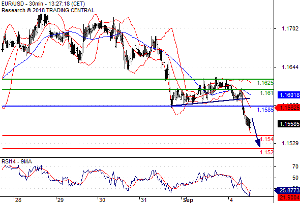 จุดที่ต้องการ: สถานะขายต่ำกว่า 1.1585 เป้าหมายต่อไปที่ 1.1540 และ 1.1520