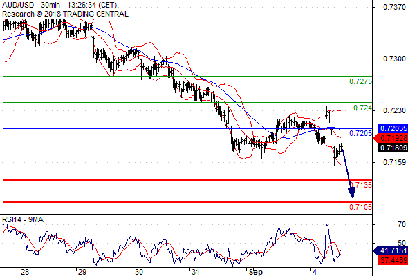 จุดที่ต้องการ: สถานะขายต่ำกว่า 0.7205 เป้าหมายต่อไปที่ 0.7135 และ 0.7105