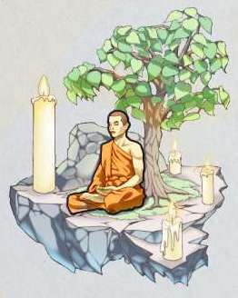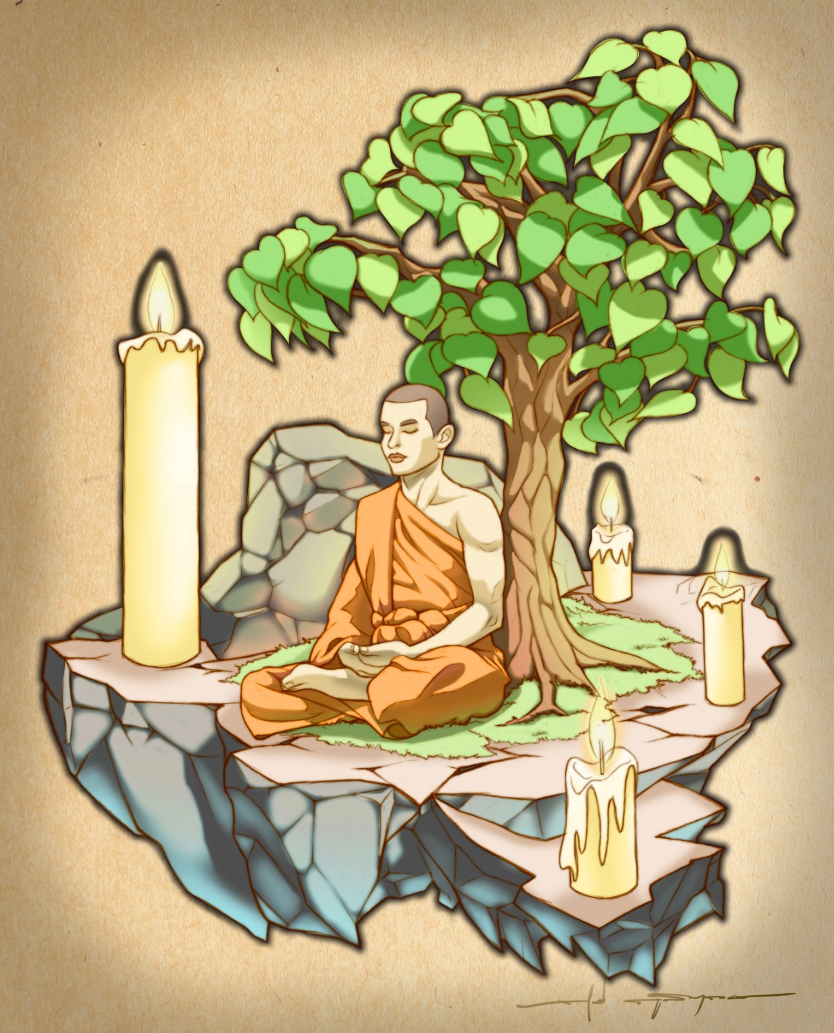 - คุมโทนสี ผมเติมโทนฟ้าให้ฉากหลังทั้งหมด เพื่อกดไม่ให้แข่งกับสีส้มในจีวร