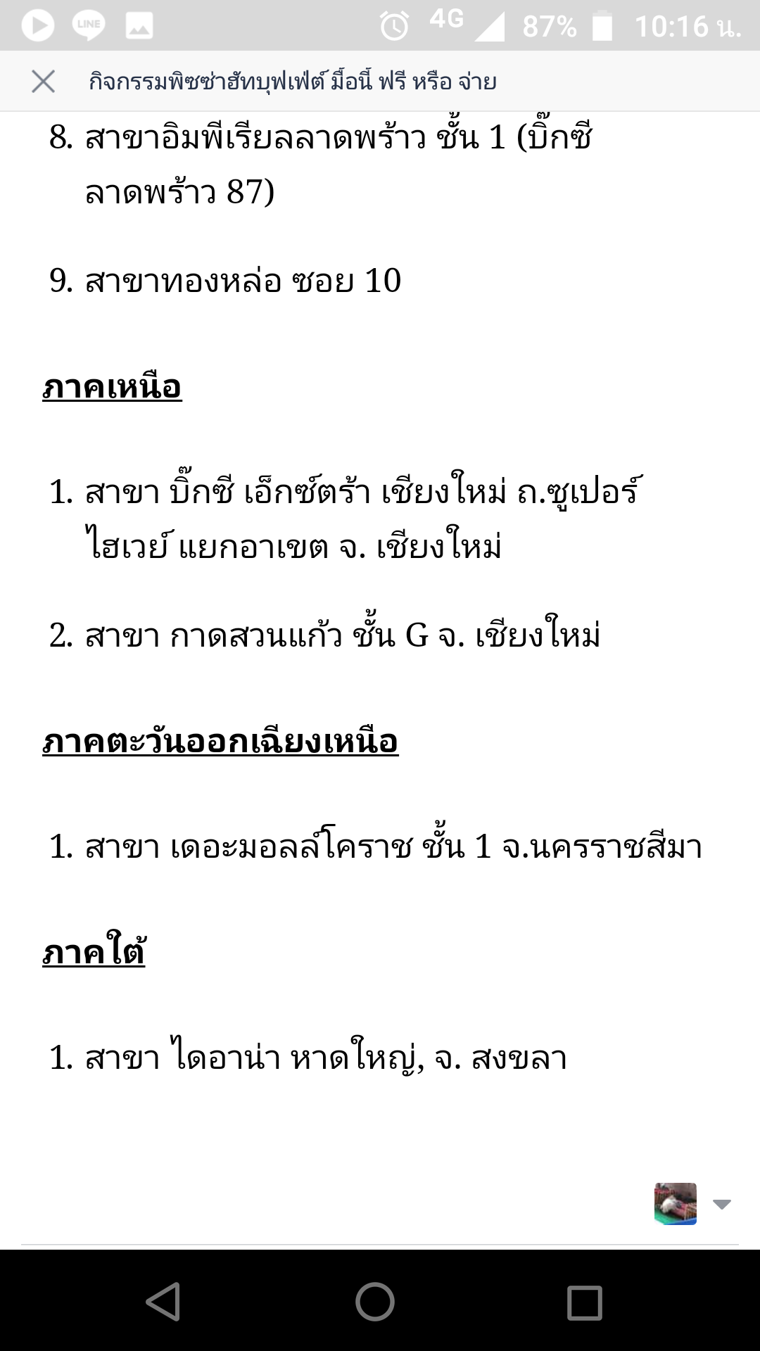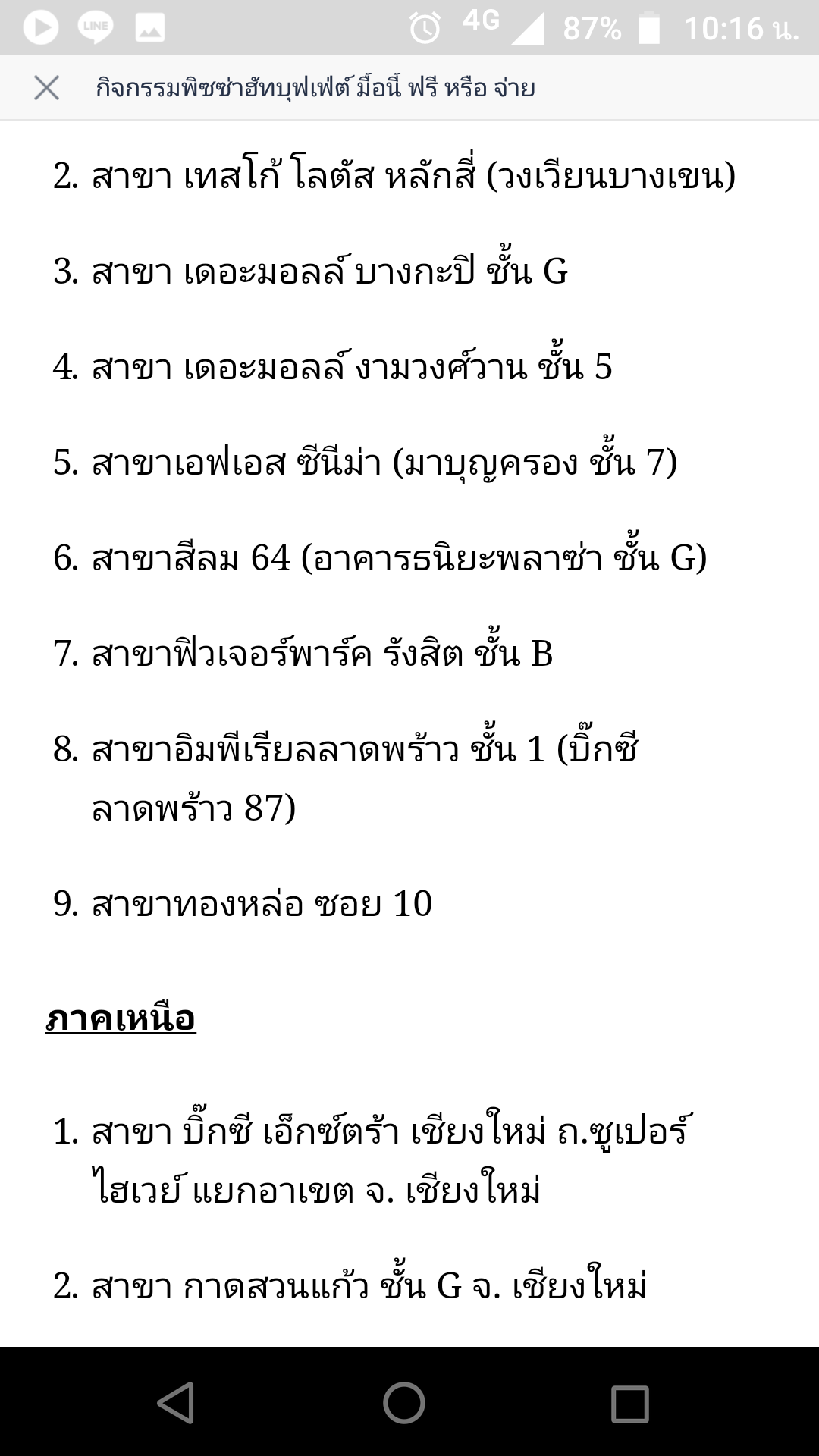 เนื่องจากเคยแอดไลน์พิซซ่า ฮัทเอาไว้ตั้งแต่ตอนไหนไม่รู้ แล้ววันนี้ทางพิซซ่าฮัทก็ส่งโปรมาให้เราดู เป็นโปร ฟรีหรือจ่าย โอ้สายบุฟเฟต์อย่างเราถึงกับรีบกดเข้าไปดูเงื่อนไขเลย แต่พออ่านได้สักพักนั่นล่ะ ลองดูครับ