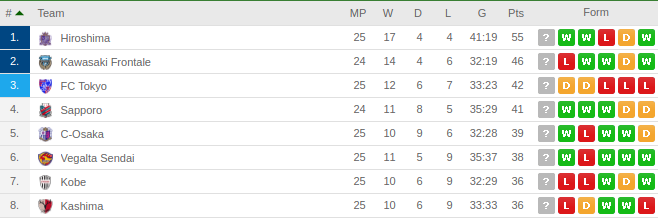 ส่วนอันดับ 1 ฮิโรชิม่า นั่นแทบจะแน่นอนแล้ว อีกไม่กี่นัด แต้มจะขาดแล้ว