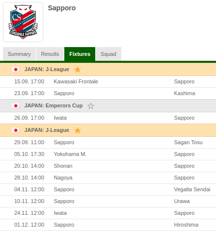 โปรแกรม 10 นัดที่เหลือของซัปโปโร กลางเดือนกันยา เจอกับฟอนตาเล่ อันดับ 2