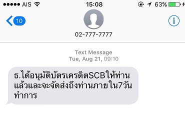 21 ส.ค ได้รับ sms แจ้งอนุมัติบัตร