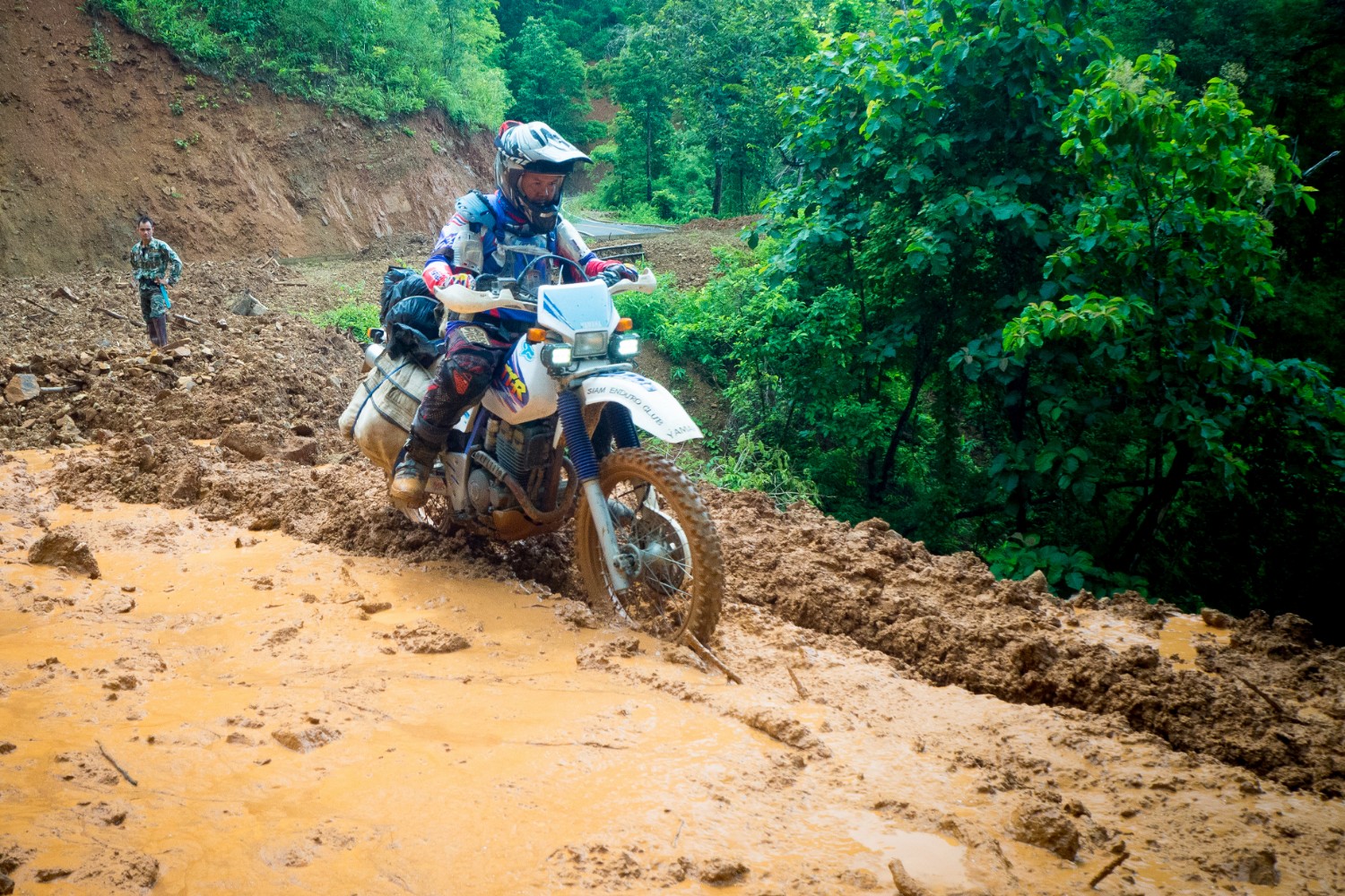 ค่ำคืนนี้ตัวเมืองแม่สะเรียงฝนยังคงตกต่อเนื่องทั้งคืน ความกังวลเข้ามาเยือนการเดินทางในหน้าฝน ช่วงพายุเข้าบนเส้นทางสายนี้คงไม่น่าสนุกเท่าไร ผมออกเดินทางตอนเช้ามาจากแม่สะเรียงเพื่อเดินทางไปยังจุดหมาย รร.ตชด บ้านปอหมื้อ และบ้านจอปราคี พร้อมกับสายฝนที่สาดโปรยสลับหยุดมาทั้งวัน