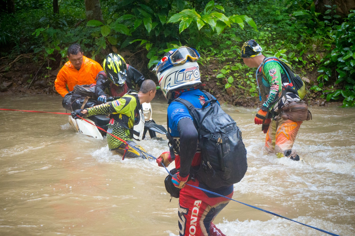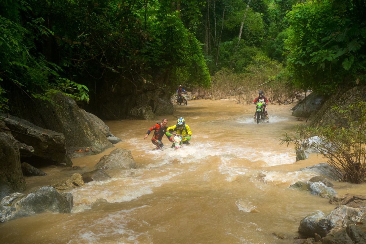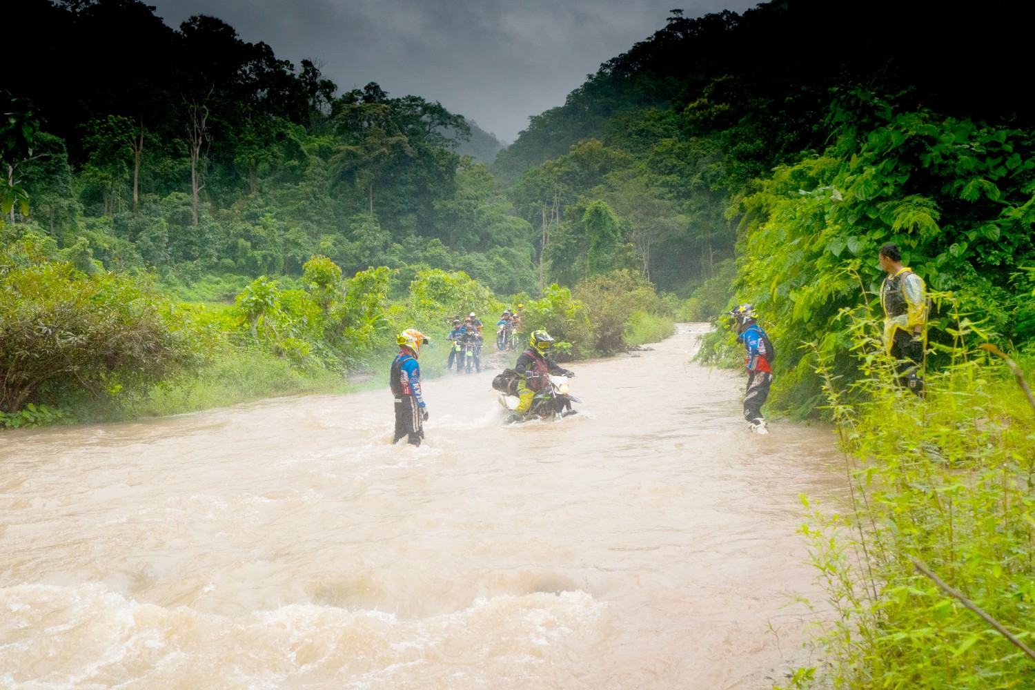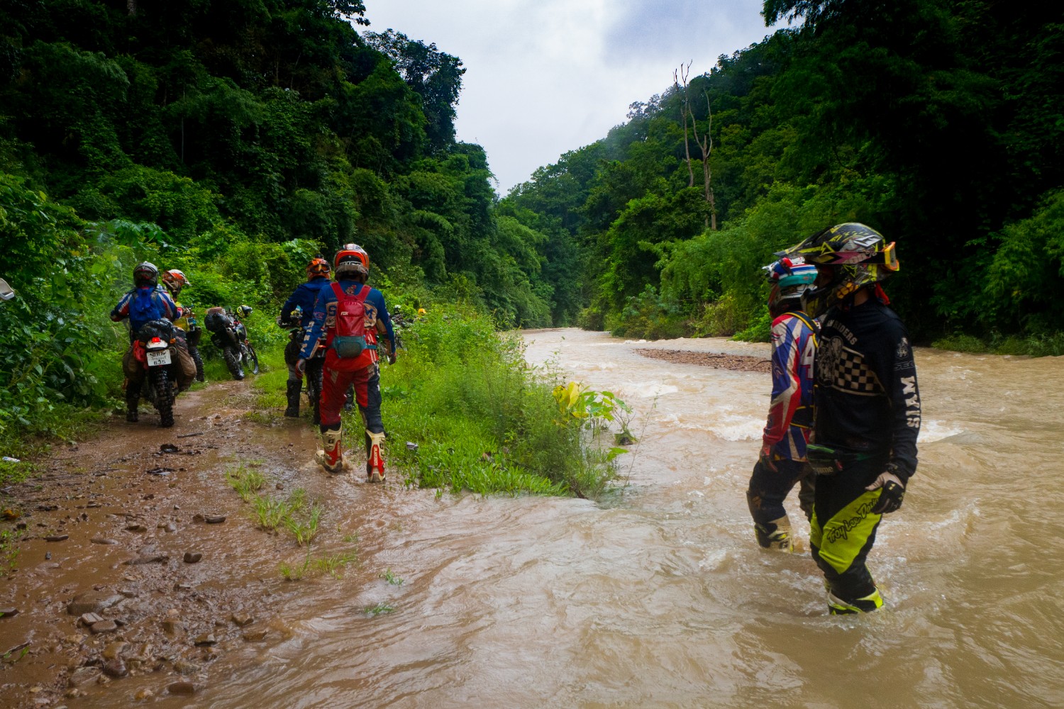 ถนนที่เรารู้จักกลายเป็นธารน้ำไหล ห้วยใสๆหลายสายกลายเป็นสีน้ำตาล แล้วความพ่ายแพ้ต่อธรรมชาติก็มาถึง คณะครูใหญ่ของทั้งสองโรงเรียน ที่เดินทางล่วงหน้ามาก่อนเราหนึ่งวันเพื่อขึ้นไปเตรียมการต้อนรับ แต่สุดท้ายก็ต้องติดอยู่ไม่ได้ไป ออกมาดักรอด้วยความเป็นห่วงคณะของพวกเรา อยู่ที่ลำน้ำใหญ่ห้วยแรก เพราะกลัวว่าเราจฝ่าเดินทางกันต่อไปในความมืด ซึ่งจะก่อให้เกิดอันตราย