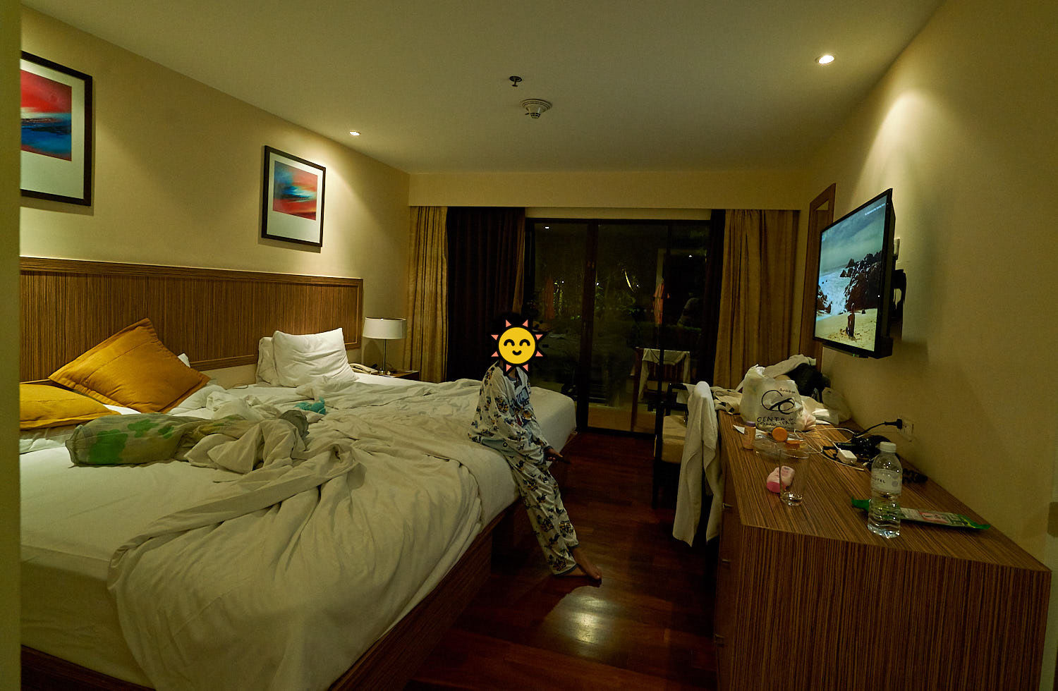 ทริปนี้เกิดขึ้นได้ก็เพราะลูกอยากจะเล่นสไลเดอร์ เลยถือโอกาสได้มาพักผ่อนไปในตัว เรามาในช่วงที่โรงแรมกำลังปรับปรุงเพื่อต้อนรับฤดูกาลท่องเที่ยว (Hi Season) ที่จะถึงอีกไม่กี่เดือน จึงเห็นหลายๆห้องมีสแลน(ม่าน)กำบัง ด้วยขนาดของพื้นที่มีอย่างจำกัดไม่ได้ใหญ่มากนัก และรอบข้างประกอบไปด้วยเพื่อนบ้าน จึงจำเป็นต้องสร้างเป็นแนวดิ่ง เพื่อเพิ่มปริมาณห้องให้ได้มากที่สุด พื้นที่ส่วนกลางจึงต้องเน้นไปที่สระน้ำคดเคี่ยวไปมาในลักษณะ Free Form ทำให้ดูแล้วเกิดความหลากหลาย สามารถว่ายน้ำวนได้รอบ
