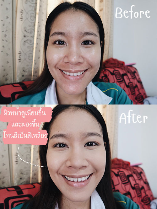 นอกจากนี้แล้วยังได้บำรุงไปในตัวด้วย เพราะมีส่วนผสมของวิตามิน C , สารสกัดจากดอกคาโมมายล์ ที่จะช่วยลดการเกิดอนุมูลอิสระ แล้วก็สารสกัดจากดอกบัวหลวงที่ช่วยในเรื่องของการการมอบความชุ่มชื้นให้แก่ผิวที่ขาดน้ำแบบเรา ใช้แล้วรู้สึกดี 5555