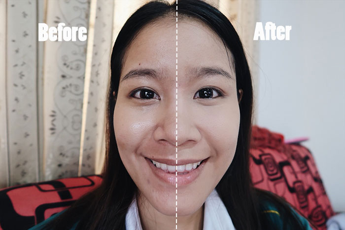 ตามภาพเลยค่า เราแต่งหน้าเสร็จตอน 8.30 น. ดูดีมาก 55555 หน้ากริบเชียว ถามว่าระหว่างวันหน้ามันขึ้นมั้ย มันจ้า แต่ยังไม่เยิ้มจนหน้าเกลียด แต่ก็คือมันนั่นแหล่ะ พอตกเย็น ผ่านไป 9 ชั่วโมง ใช้คำว่าเยิ้มเลยจ้า ต้องซับมันแล้วนะ แต่ในรูปอาจจะเห็นไม่ชัดเท่าไหร่ คือเราไม่แน่ใจว่าคนผิวแห้ง-ผิวผสมจะเป็นยังไง แต่สำหรับคนผิวมัน ก็ค่อนข้างมันแหล่ะ แนะนำให้ซับหน้าซักหน่อยตอนกลางวัน ก็อยู่ได้ถึงเย็นแหล่ะจ้า แต่!! ถ้าถามว่าหน้ามันแล้วก็แย่สิ่คะ จะบอกว่าไม่แย่จ้า แป้งยังคงกริบ หน้ายังคงเนียน อาจจะมีหลุดๆไปบ้าง แต่ไม่มีร่อน ไม่มีแตก ไม่มีตกร่องอ่ะ ซับหน้าแล้ว ก็กลับมาสวยใสดังเดิม เลยให้คะแนนมาก และยังคงชอบอยู่นะ เราก็มองข้ามเรื่องคุมมันได้นิดหน่อยของนางไป ระหว่างวันก็ซับเอา ไม่เห็นจะยาก 555555 โดยรวม ให้ผ่าน ผ่าน ผ่าน !!!
