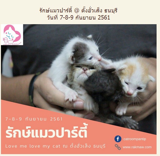 ทาสแมวใจบุญทั้งหลาย ศุกร์-เสาร์-อาทิตย์นี้ เรามีนัดกัน ที่ งาน“รักษ์แมวปาร์ตี้ งานนี้เหมียวมีบ้าน”