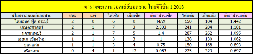 ไดม่อนด์ ฟู้ด สระบุรี 3 - 0 เกษตรศาสตร์ เซ็ต คะแนน 25 - 19, 25 - 11 และ 25 - 22