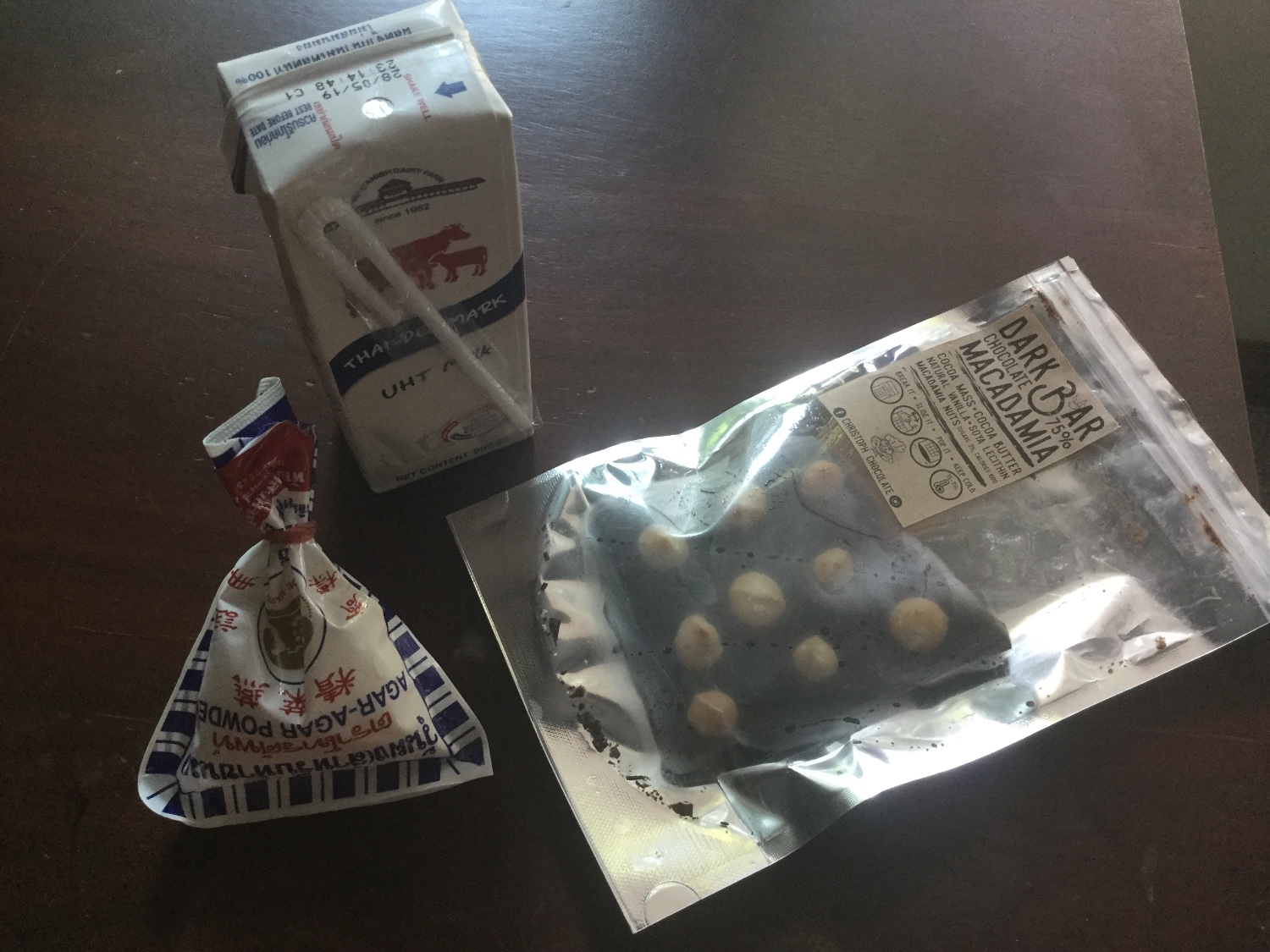 อยากลองทำขนมดูค่ะ มีดาร์คช็อคเหลืออยู่ กับนม และผงวุ้น