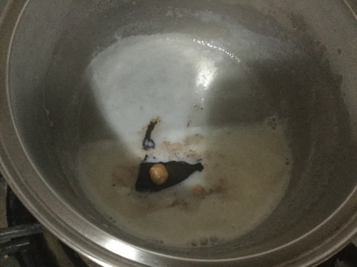 ละลายผงวุ้นครึ่งช้อนกับน้ำนิดหน่อยก่อนตั้งไฟอ่อนๆ พอละลายใส่นมครึ่งกล่อง ค่ะ