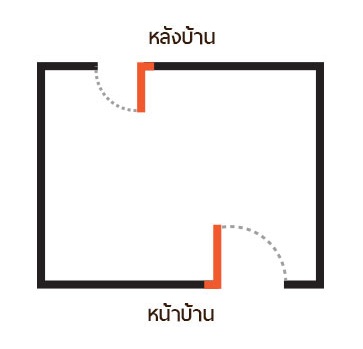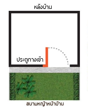 1.ประตูอยู่ตำแหน่งซ้ายมือของบ้านและผลักเข้าด้านใน
