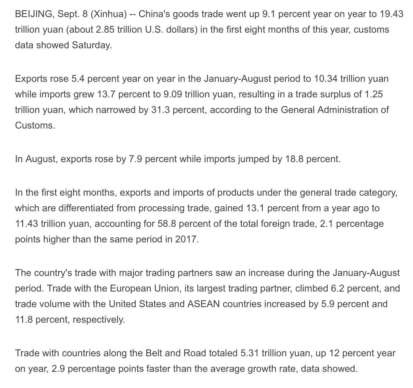 แม้ว่าทรัมป ได้เริ่มขึ้นภาษีสินค้าจีนมา เกือบสองเดือนเต็มแล้ว ล่าสุดตัวเลขการส่งออก และนำเข้าของจีน ยังคงเติบโตในอัตราที่สุงมาก