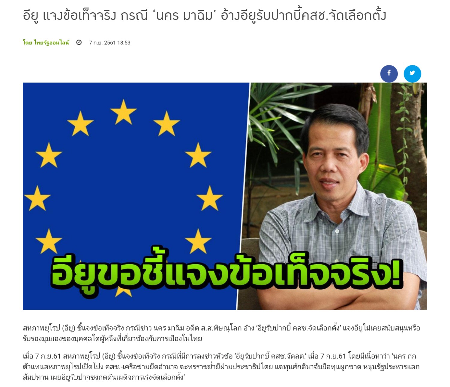 คือนายนคร ทำหนังสือฟ้องร้องประเทศไทยและรัฐบาล คสช.ต่อสหภาพยุโรป