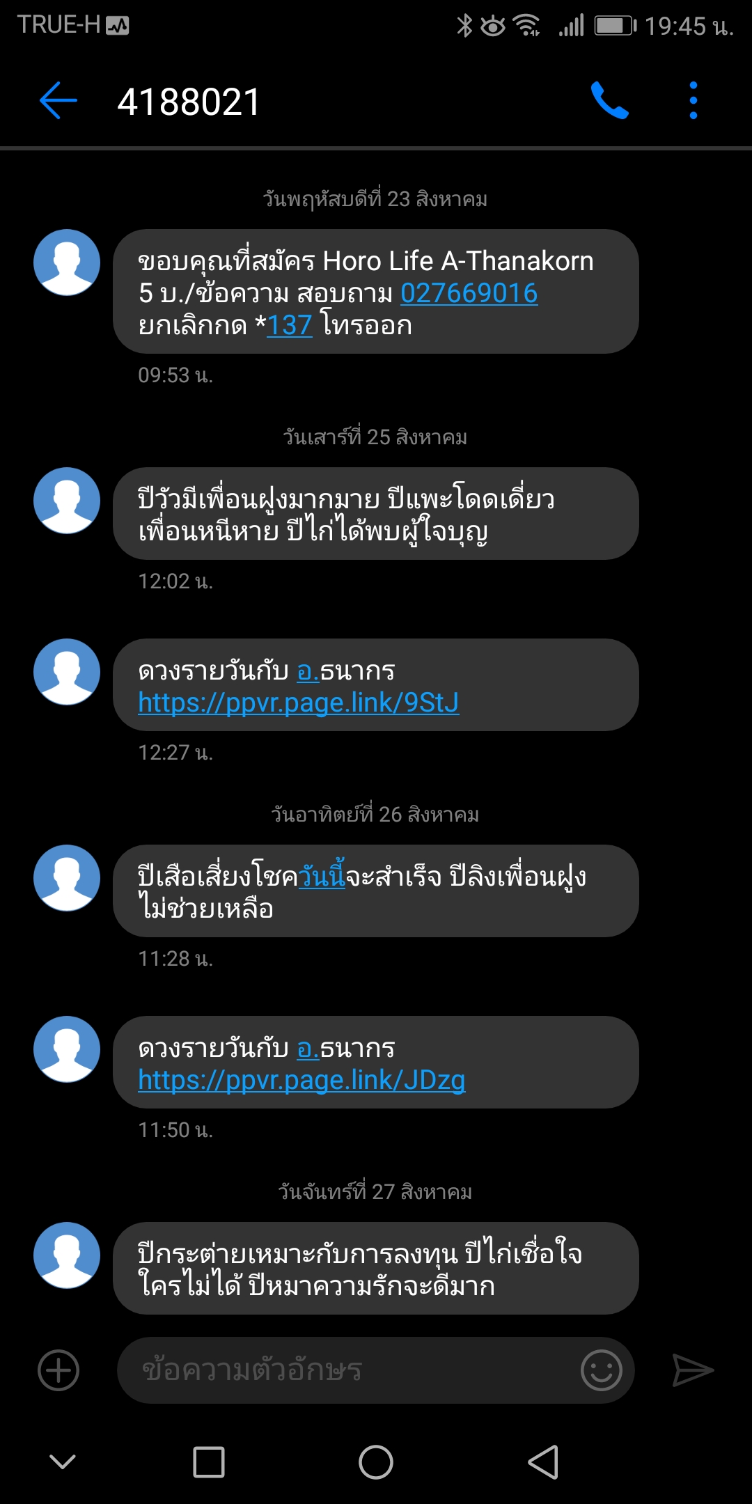 จากความเผลอเรอและยุ่งกับงานประจำ และคอนเทนต่างๆมากมาก หรือข้อความแจ้งเตือน จขกท ส่วนมากจะปัดทิ้งซะส่วนใหญ่ เพราะคิดว่าเป็นข้อความ หรือเมลปรกติ แต่วันนี้มีเวลามาเช็คค่าบริการต่างๆ ก็พบว่ามีค่าบริการนอกเหนือแพคเกจ 150 บาทเช็คได้ว่ามีการสมัครดูดวงเองเฉย ข้อความละ 5 บาท ก็ฝากทุกท่านดูรายละเอียดเวลามีข้อความแปลกกันด้วยนะครับ ปล.จากอดีตลูกค้าทรู