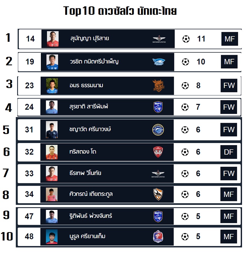 Top 10 ดาวซัลโว นักเตะไทย