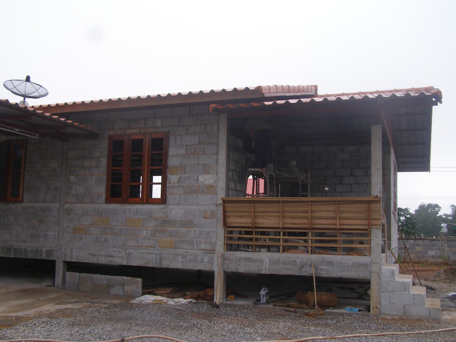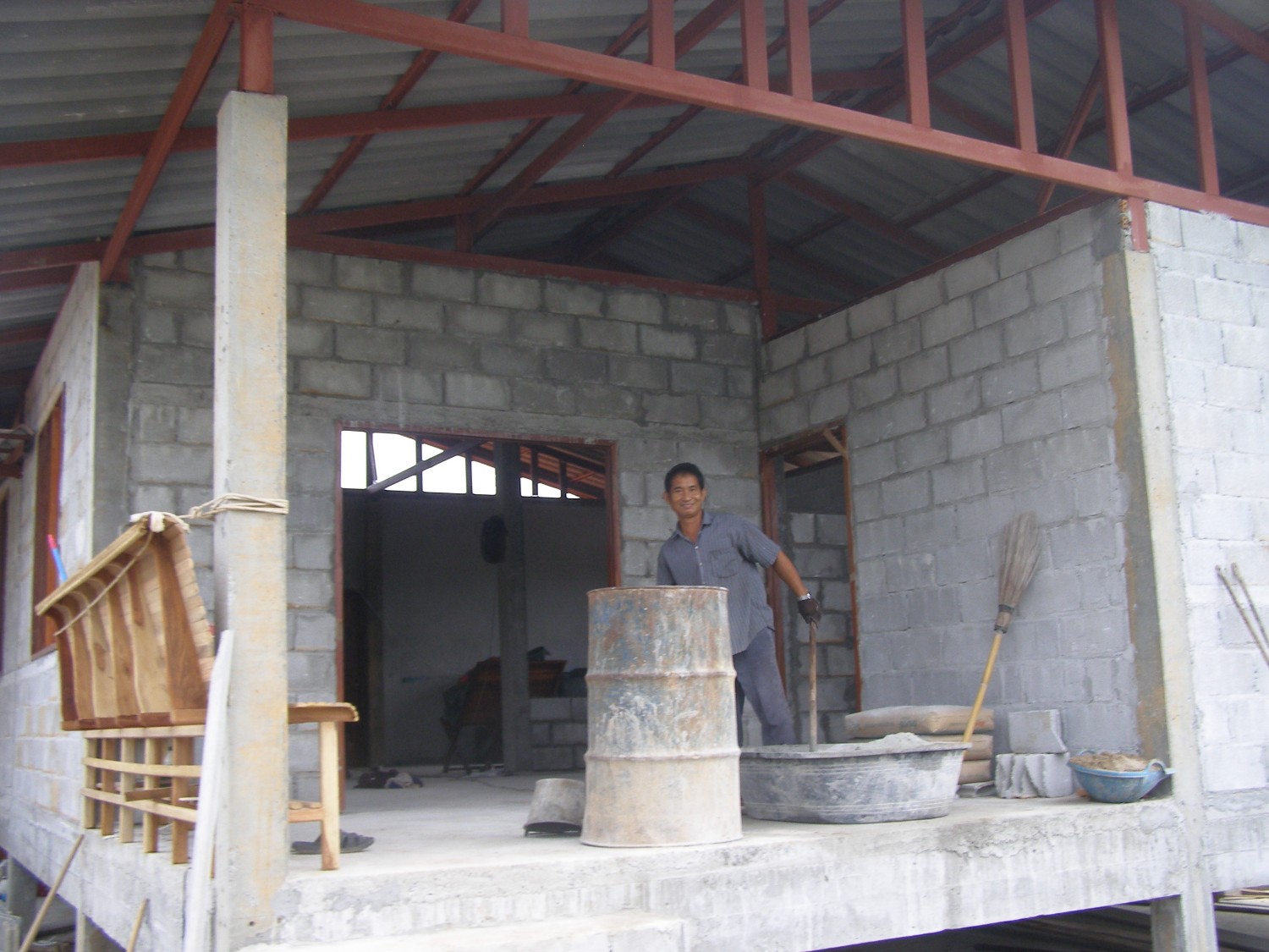 เราไม่ได้จ้างเหมาสร้างบ้าน เพราะจะได้บ้านหลังเล็กเกินไปกับเงินที่เหลืออยู่ เราโชคดีมากที่ได้ช่างคนเดียวที่เคยเป็นถึง "โฟร์แมนก่อสร้าง" ที่เคยรับงานมาทั้งประเทศ และมีความฝันจะกลับมาอยู่กับลูกๆที่จังหวัดเลย