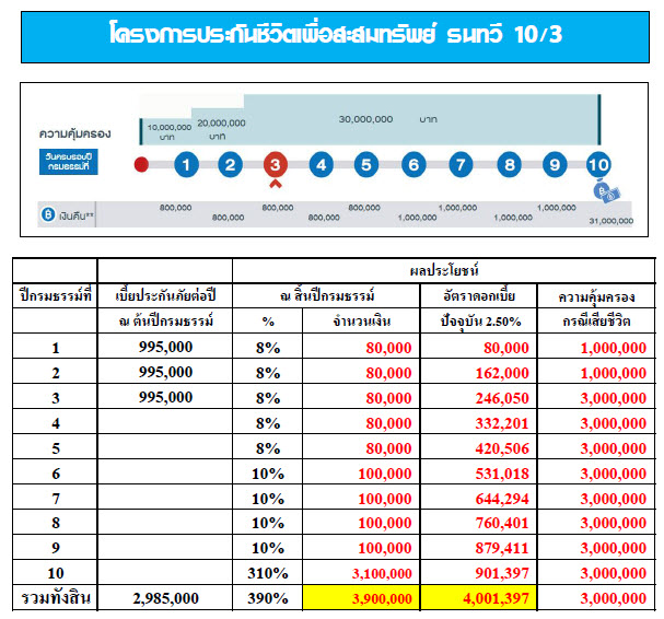 ประกันชีวิต ที่เป็น 1x/x เช่น 10/3, 12/5; ตอนนี้ ธนทวี3 10/3 IRR 3.42% นี่สูงที่สุดมั้ยคับ