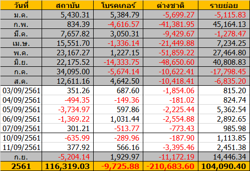 Sinthorn Summary 11/9/2561 : ต่างชาติขายสุทธิ -3,395.46 ลบ.