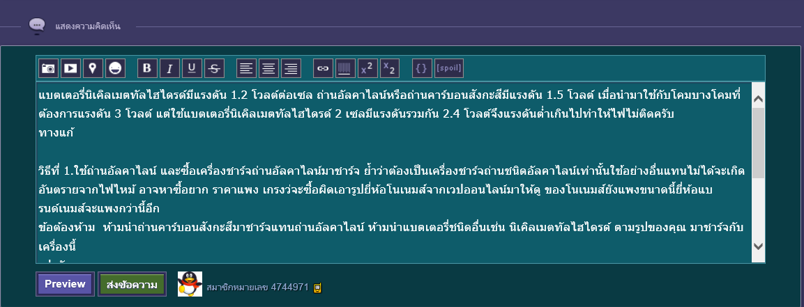 การแสดงผลไม่ตรงทำให้ผมต้องแยกตอบหลายความเห็นเพราะเป็นเรื่องสำคัญที่ต้องตอบให้เข้าใจชนิดและคุณสมบัติของถ่านไฟฉายและเครื่องชาร์จ ถ้าเข้าใจผิดใช้งานผิดประเภทจะเกิดอันตรายถึงขั้นไฟไหม้บ้านได้ง่ายๆ