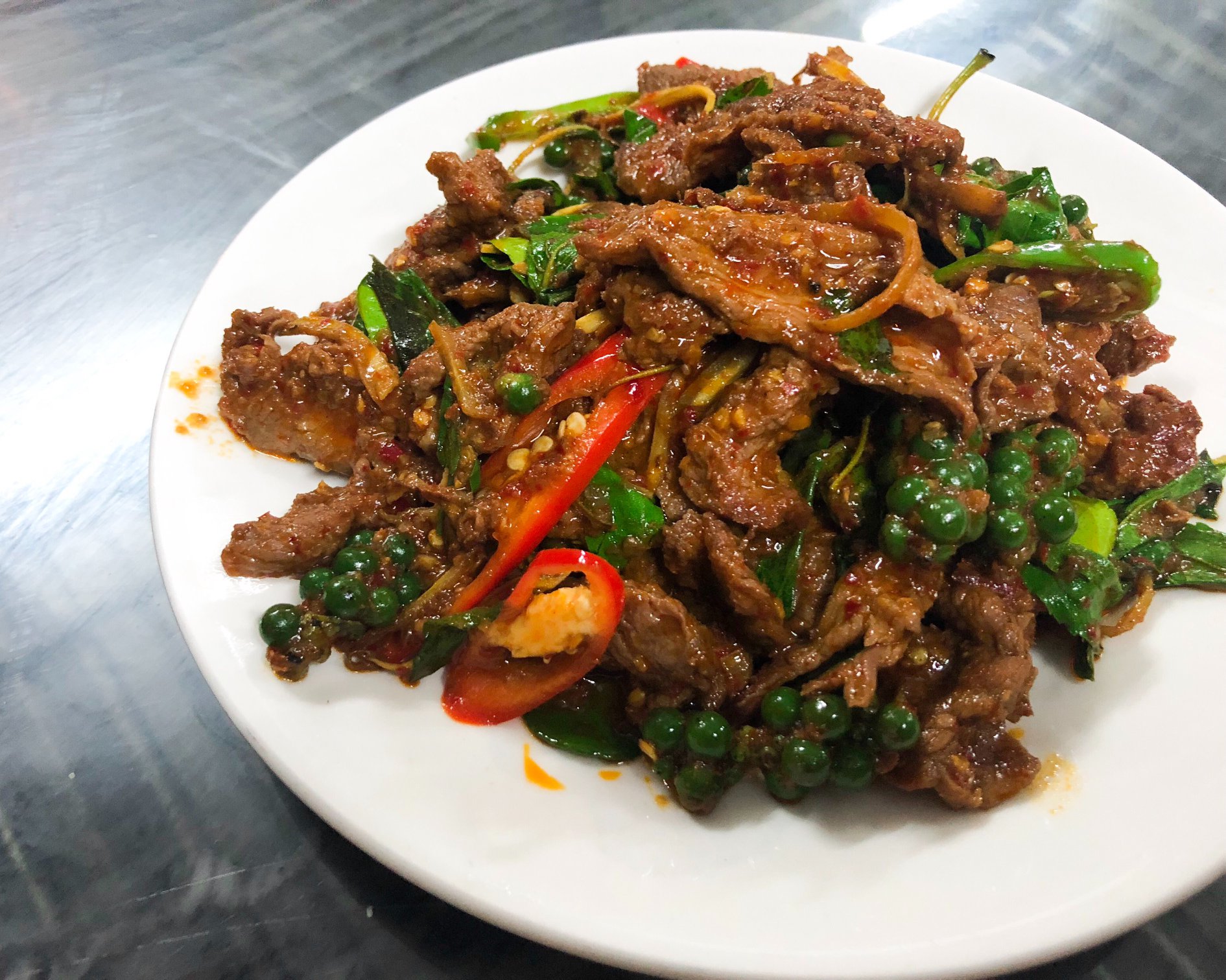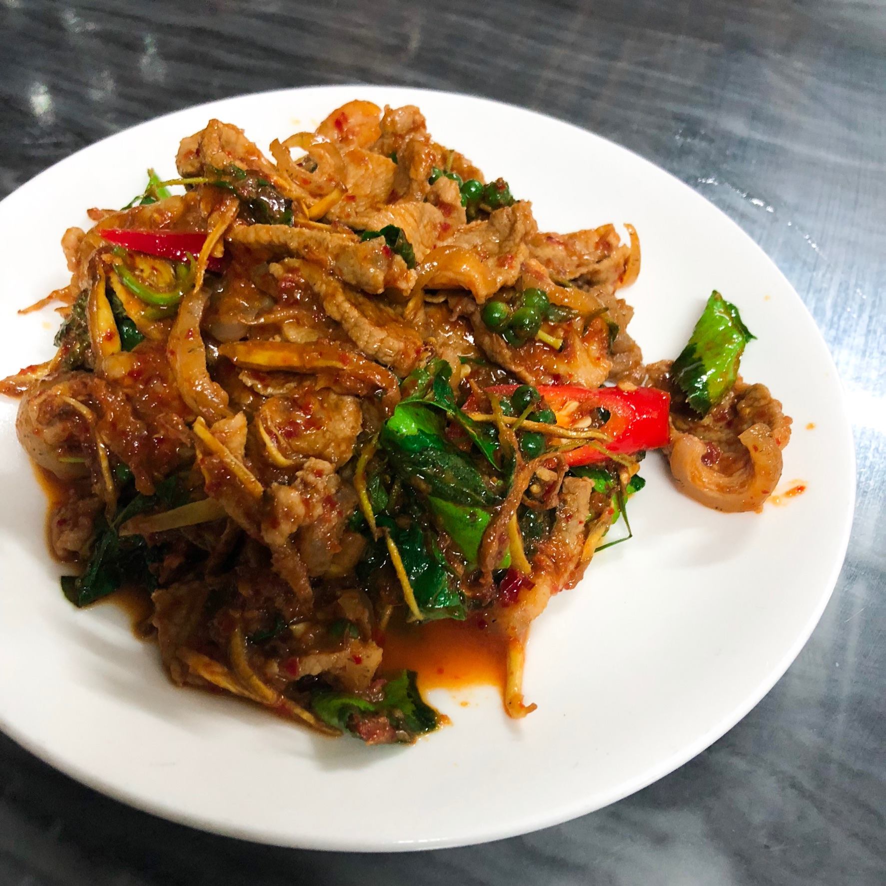 จานนี้คล้ายๆกับจานเมื่อกี้เลย แต่เป็น ผัดเผ็ดหมูป่า ราคาเท่ากัน 150฿ ใครชอบอาหารรสจัดร้านนี้ตอบโจทย์มาก เพราะว่ากินไป2ชิ้นก็คือเผ็ดมากจริงๆ