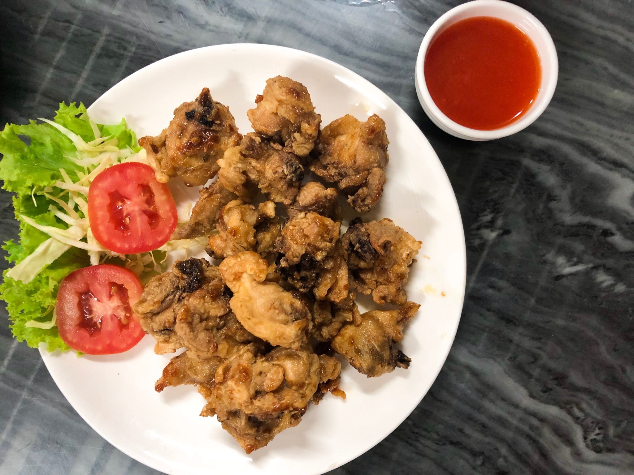 ถัดมาเป็นของที่ทอดกระเทียมกันบ้าง ไก่รวนเค็ม 130฿