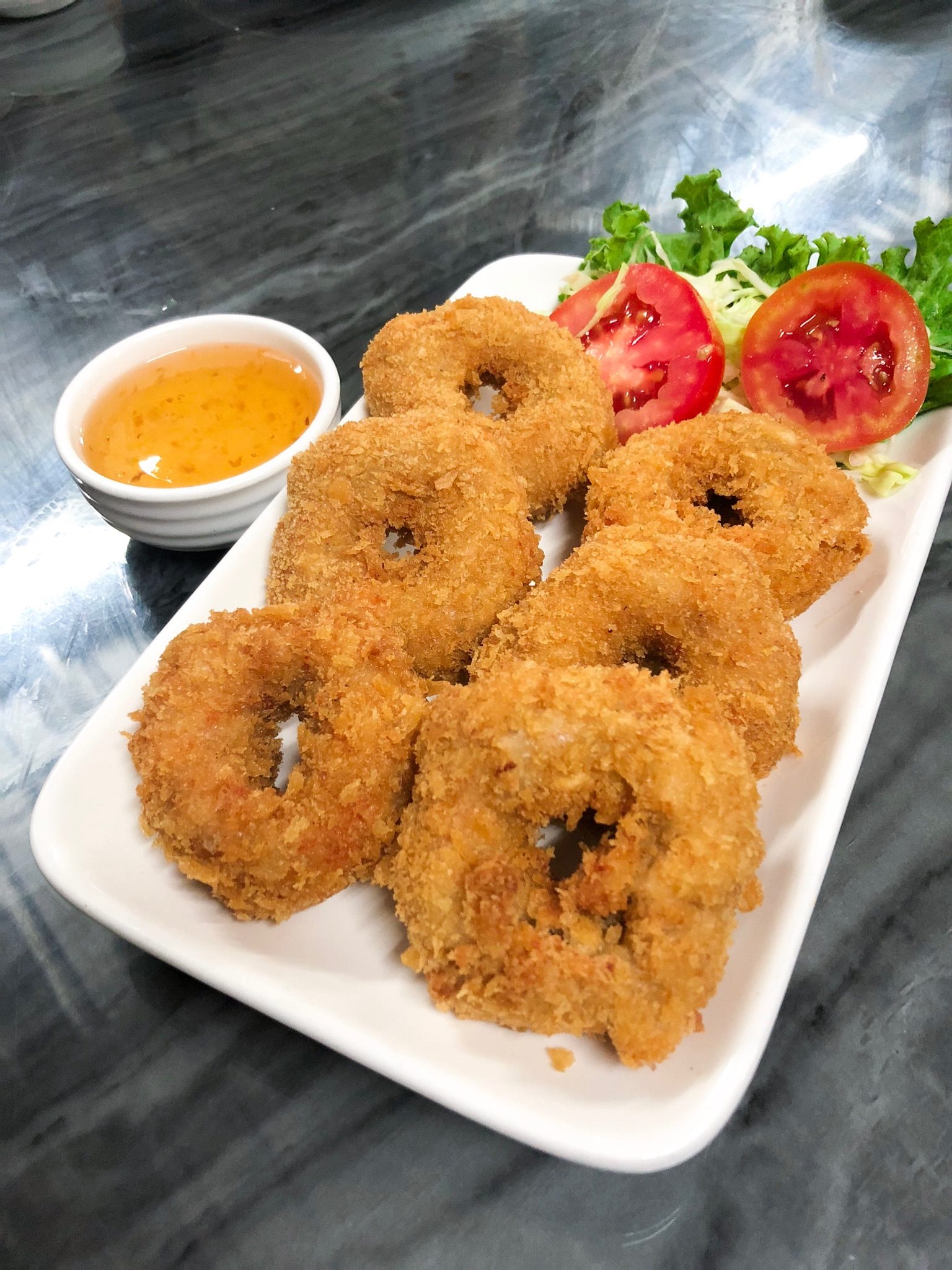 2จานสุดท้ายเป็นจานที่สั่งเพิ่มมา ทอดมันกุ้ง 140฿ เค้าทอดมาเป็นวงแหวนมีเนื้อกุ้งเล็กๆอยู่ข้างในด้วย