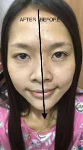 นี่ค่ะ เมื่อได้ลองลงบนในหน้าจะเห็นได้ว่า ด้านที่ไม่ทายังคงดำอยู่ แต่ด้านที่ทาหน้าใส ปกปิดได้ดีมาก สิวหาย รอยดำก็หายไปเลยค่ะ จะเหลือแต่ที่เป็นหัวสิวนิดหน่อย เนื่องจากว่าติ๊กทาแบบไม่หนามากค่ะ แต่ถ้าทาซับลงไปอีกรอบน่าจะเนียนกริบเลยค่ะ