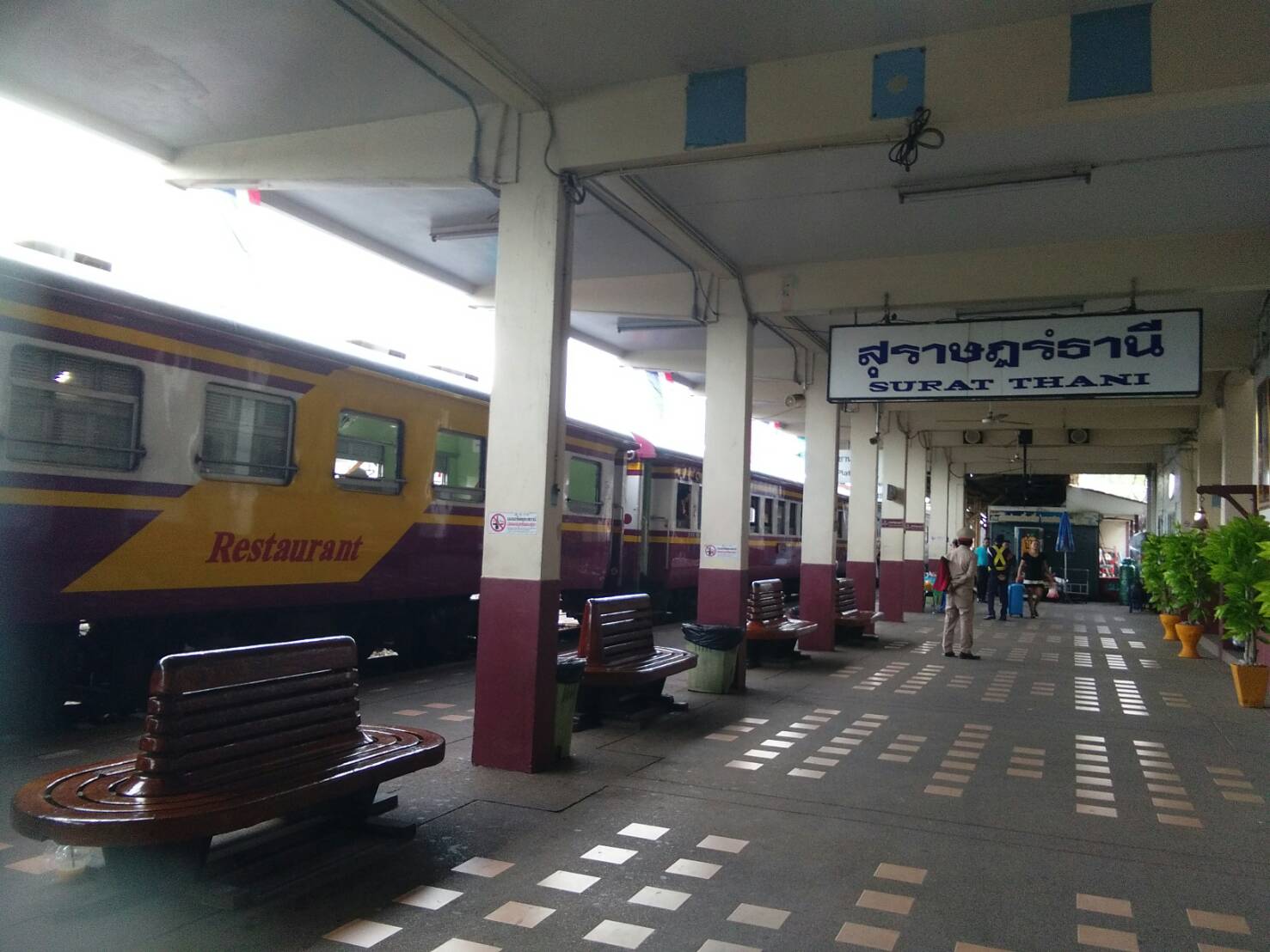 เราเดินทางจากกรุงเทพไปสุราษฎร์ธานีโดยรถไฟ ขบวนรถนอน ซึ่งเราก็จะไปถึงในตอนเช้าประมาณ 7 โมง ที่สถานีจะมีห้องอาบน้ำ ค่าบริการ 3 บาท เผื่อใครไม่อยากเน่า หรือจะเปลี่ยนชุดเตรียมพร้อมสำหรับถ่ายรูปที่เขื่อน เช่นเพื่อนของเรานั่นเอง