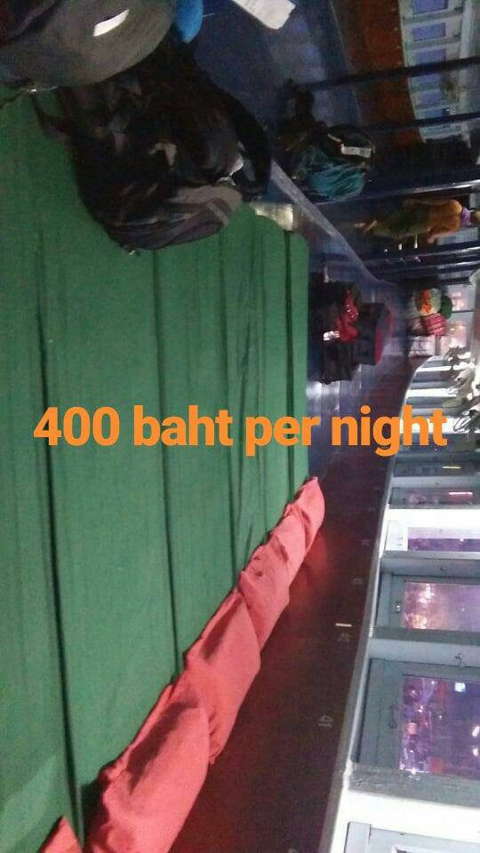 เดินมาถึงท่าเรือบ้านดอน เราก็จะเห็นเรือนอนจอดเรียงกัน เรือนอนไปพะงันจะจอดลำแรกสุด ไม่ก็ลองถามว่าลำไหนไปเกาะพะงัน พอเจอเรือเราก็ซื้อตั๋ว แล้วเอาของไปวางจองที่นอนไว้ ใครคิดไม่ออกว่าเป็นแบบไหนให้คิดตามนัดชานะคะ ที่นอนขนาดเล็กวางเรียงต่อกัน กับนอนหนุน 1 ใบ ที่เพื่อนเราเผลอล้มตัวนอนบนหมอนแล้วเสียงดัง ปั๊ก! แอบสงสาร นางลืมทดสอบหมอนก่อนใช้งาน