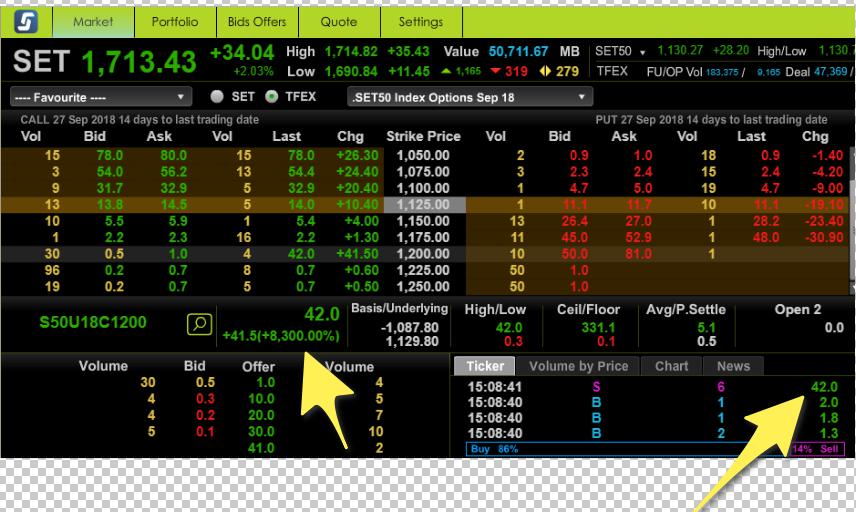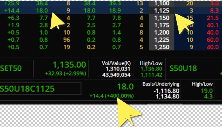 ยอดซื้อขายออฟชั่นทำสถิติ 5หมื่น5 วันเดียว วันวาน 14เดือน9/2018