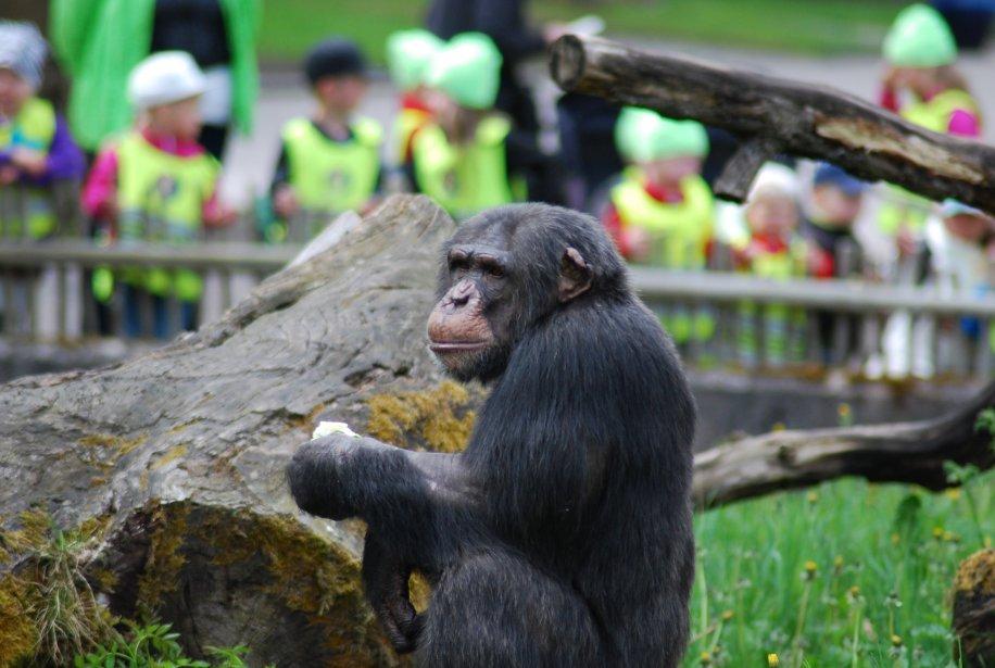 ลิงชิมแปนซีที่เลียนแบบมนุษย์ และมนุษย์ที่เลียนแบบชิมแปนซีในสวนสัตว์