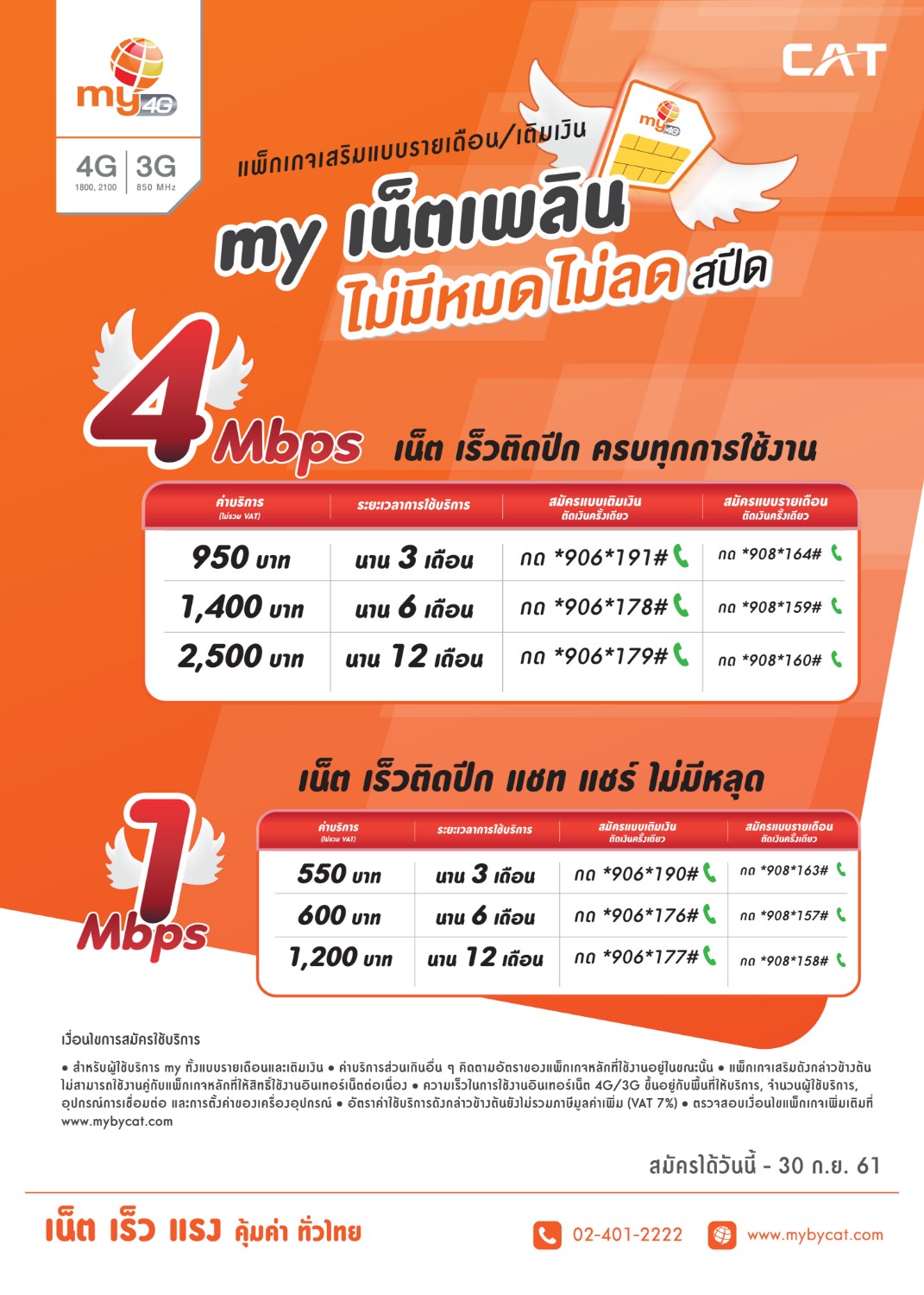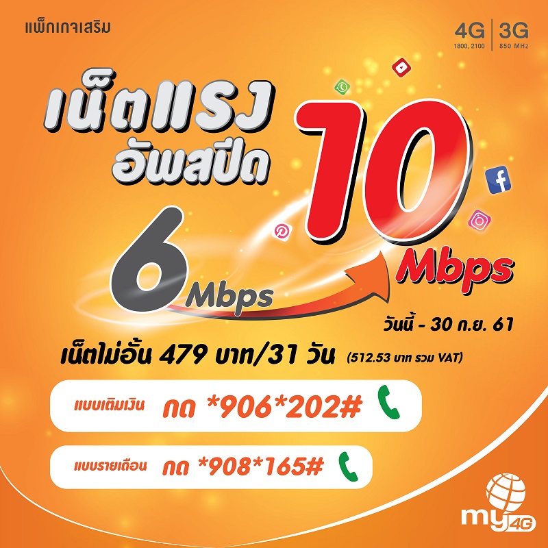 my by cat เปลี่ยนโปรจาก 4Mbps เป็น 6 up 10Mbps ไหมได้