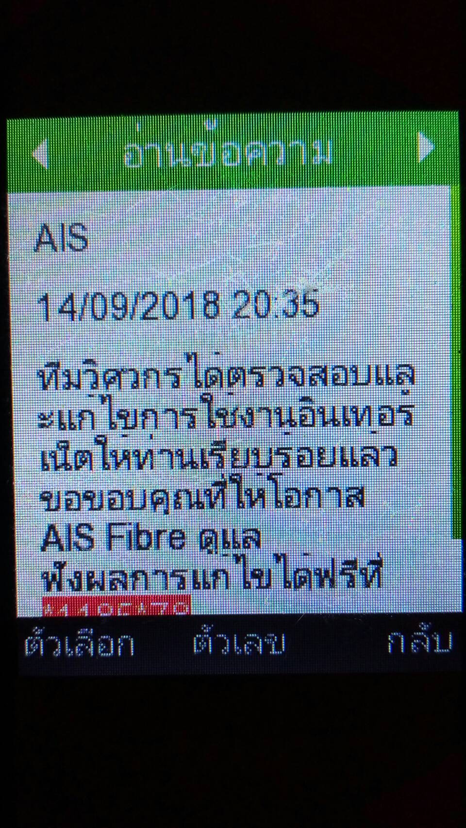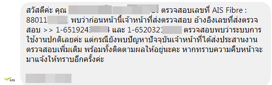 - คอลเซ็นเตอร์ ตอบรับเรื่อง แล้วก็ส่งข้อความมาบอกแก้ไขแล้ว ไม่พบปัญหา