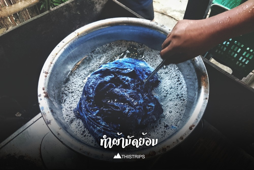 จากนั้นก็นำไปแช่สีย้อมและน้ำยาตามขั้นตอน สุดท้ายก็นำไปต้มเพื่อล้างเทียนออก มือเรากลายเป็นสีน้ำเงินไปด้วยเลย แต่พอเห็นผลงานก็ชื่นใจ