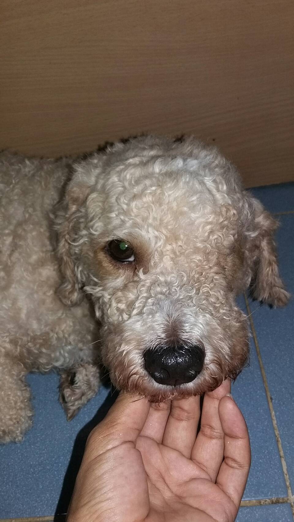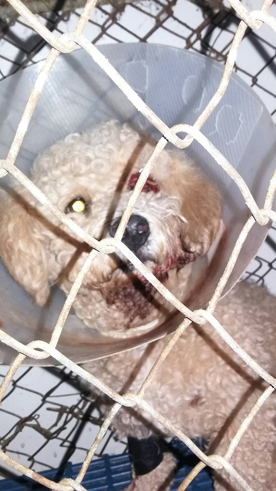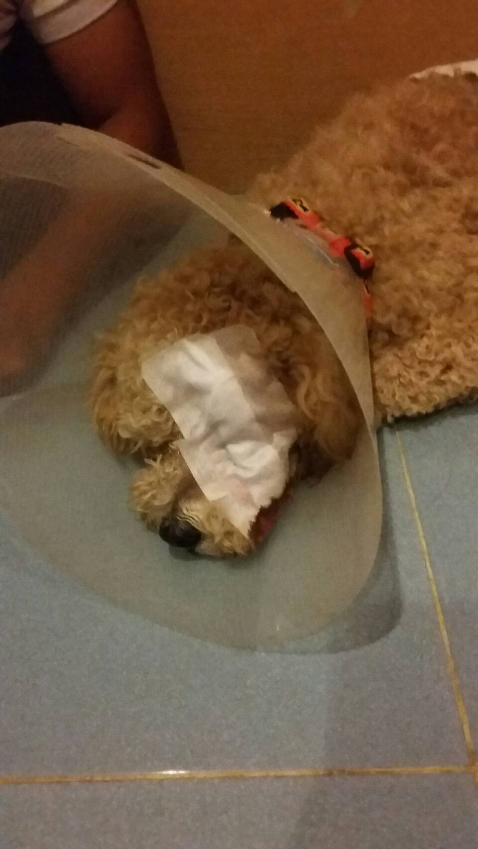 กกกก ตู้มมมมม ผมวิ่งไม่คิดอะไร (ในใจคิดไอ้นี่โดนแล้วววว หมาผมมีหลายชื่อครับ มันนี่ มี่นัน ไอ้นี่ ลูกนี่ ลูกเน่า ฮ่าๆๆๆๆ ชื่อเยอะเลย ) ภาพที่เห็นหมาน้อยของผมนอนคาอยู่ที่ล้อหลังดิ้นทุรนทุราย จังหวะที่ผมวิ่งออกไปรถกำลังจะขับไปต่อ ทั้งๆที่หมาผมยังอยู่คาล้ออยู่ ผมรีบตะโกนออกไปบอก รถจึงยังไม่ขับต่อไป หน้าด้านซ้ายเป็นแผลเหวอะหวะเลือดไหลนองเต็มหน้า ดวงตาพร่าๆมัวๆ เห็นแล้วใจหายสงสารหมาจับใจ เหมือนเดิมเลยครับรีบเอาไปส่งโรงพยาบาล หมอบอกยังไม่ทำอะไรต้องรอดูอาการพรุ่งนี้จะโทรแจ้ง ถัดมาอีกวันหมอโทรแจ้งว่าต้องเย็บแผลและควักเอาตาออก เพราะตาได้ฝ่อเสียไปแล้ว พอหมอทำเสร็จหมาฟื้นเรียบร้อยผมจึงไปเยี่ยม หมอบอกถ้ากินอาหารได้ก็สามารถนำกลับได้ โชคดีที่เจ้าหมาพันธุ์อึดของผมกินข้าวได้ จึงเอากลับได้ในเย็นวันนั้น คราวนี้จ่ายไป 5800 ++