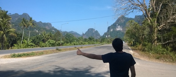 ผมเดินมาที่ข้างถนนกางแขนโบกมือด้วยความเคยชิน