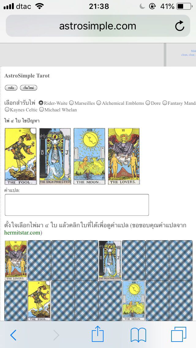 รบกวนดูดวงไพ่ยิปซีให้หน่อยค่ะ เปิดไพ่ในเว็บแล้วไม่เข้าใจ