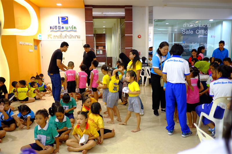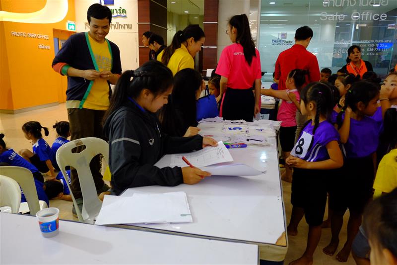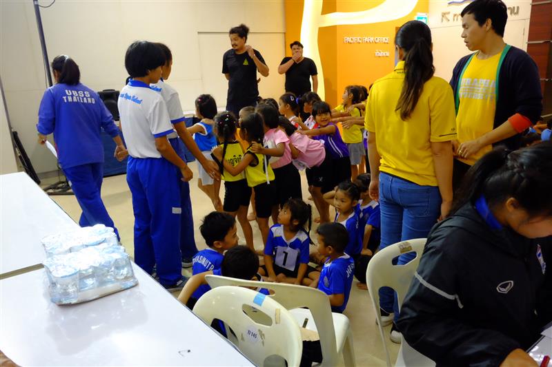 บรรยากาศตอนเช้าเก้าโมงกว่าๆ ผู้ปกครอง รวมถึงนักกีฬา ก็มาพร้อมหน้าพร้อมตากัน อลเวง สนุกสนาน คุณครูผู้รับผิดชอบก็นำนักเรียนมารายงานตัวก่อนลงแข่งขัน