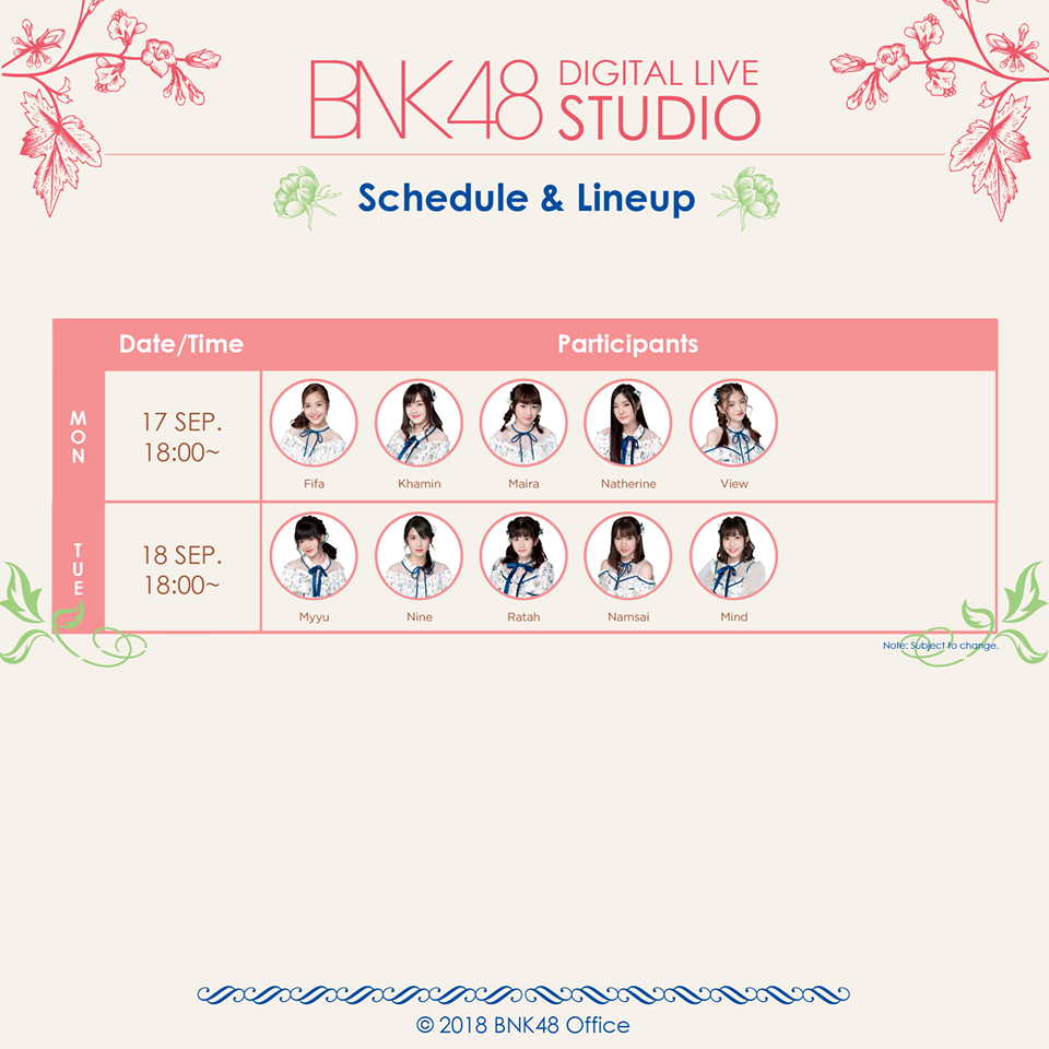 BNK48 Digital Live Studio วันอังคารนี้ เตรียมพบกับสมาชิกดังต่อไปนี้ค่ะ พบกันวันที่ 23 มีนาคม 2564 ที่ BNK48 Official Facebook และสามารถร่วมกิจกรรมเพื่อร่วมสิทธิ์นั่งชมติดตู้ปลาได้ที่เพจ https://www.