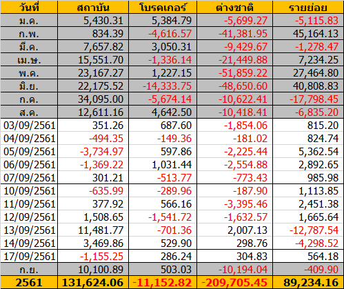 Sinthorn Summary 17/9/2561 : ต่างชาติซื้อสุทธิ 304.83 ลบ.